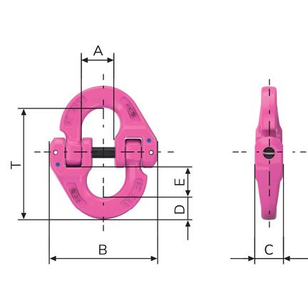 - External connections, e.g. lifting points, shackles, lifting clamps and the chains can be fitted in the lock bracket halves.
