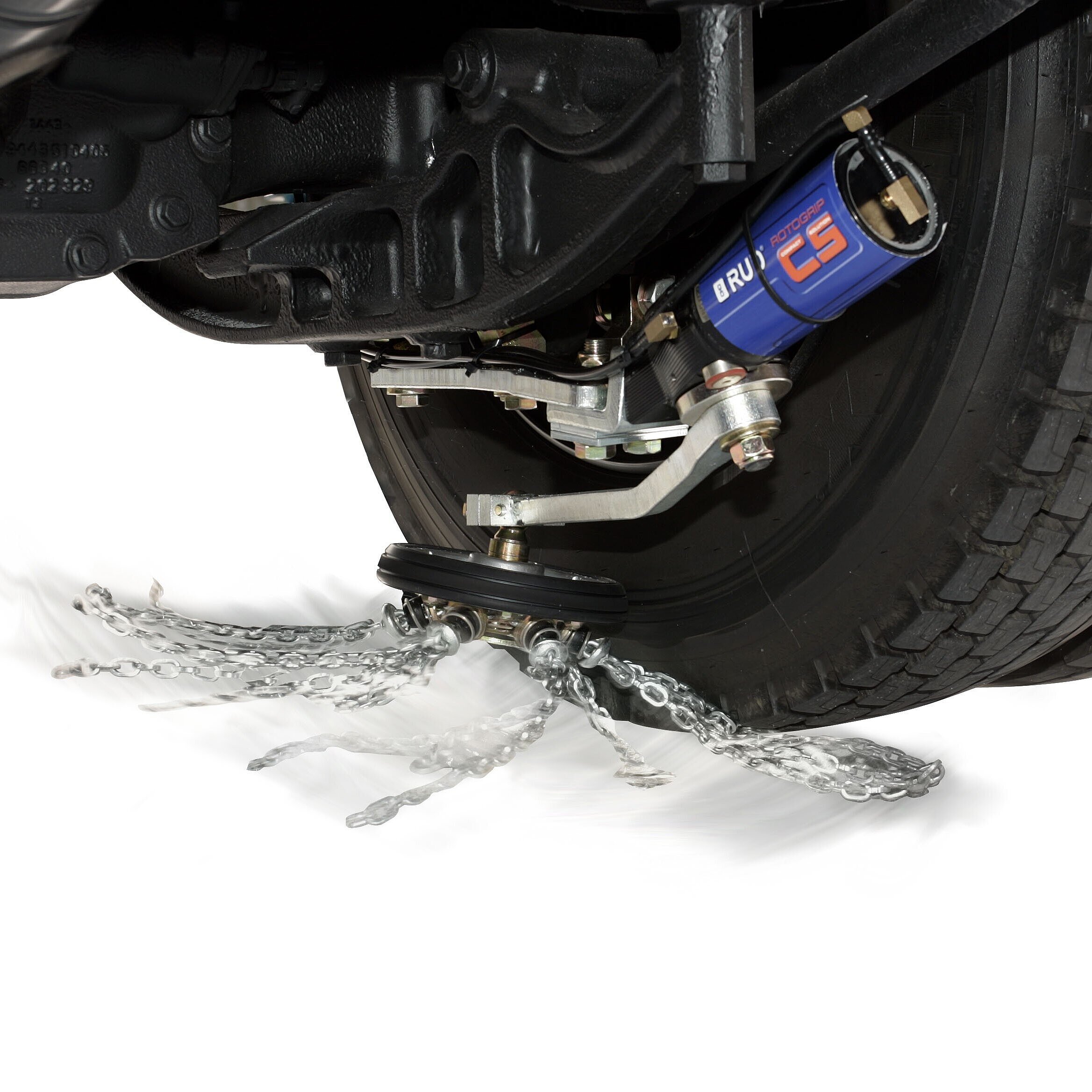 Automatic safety can be activated from the cab at the touch of a button. The switchable chain gyroscope with spring-loaded chain bundles.