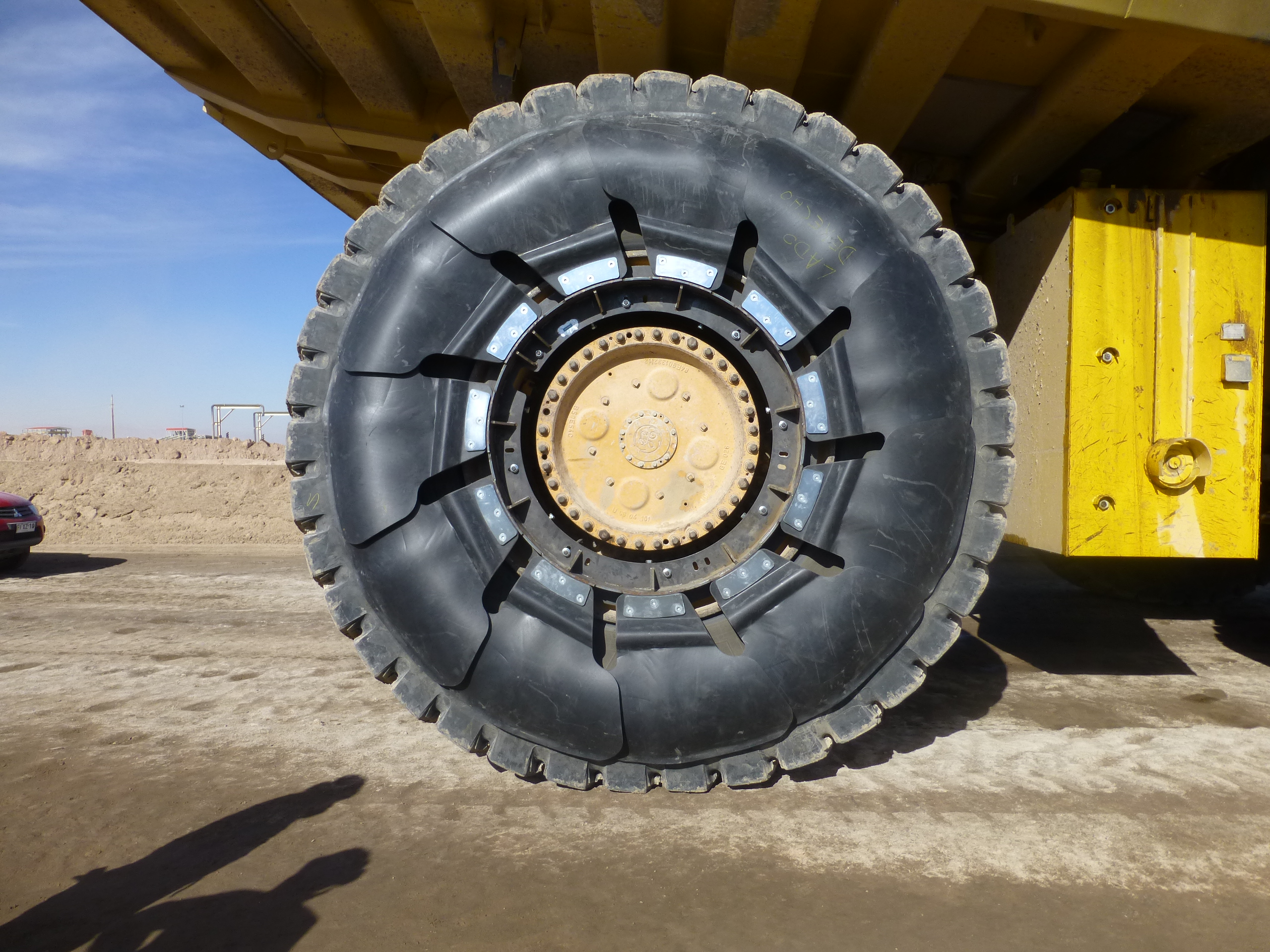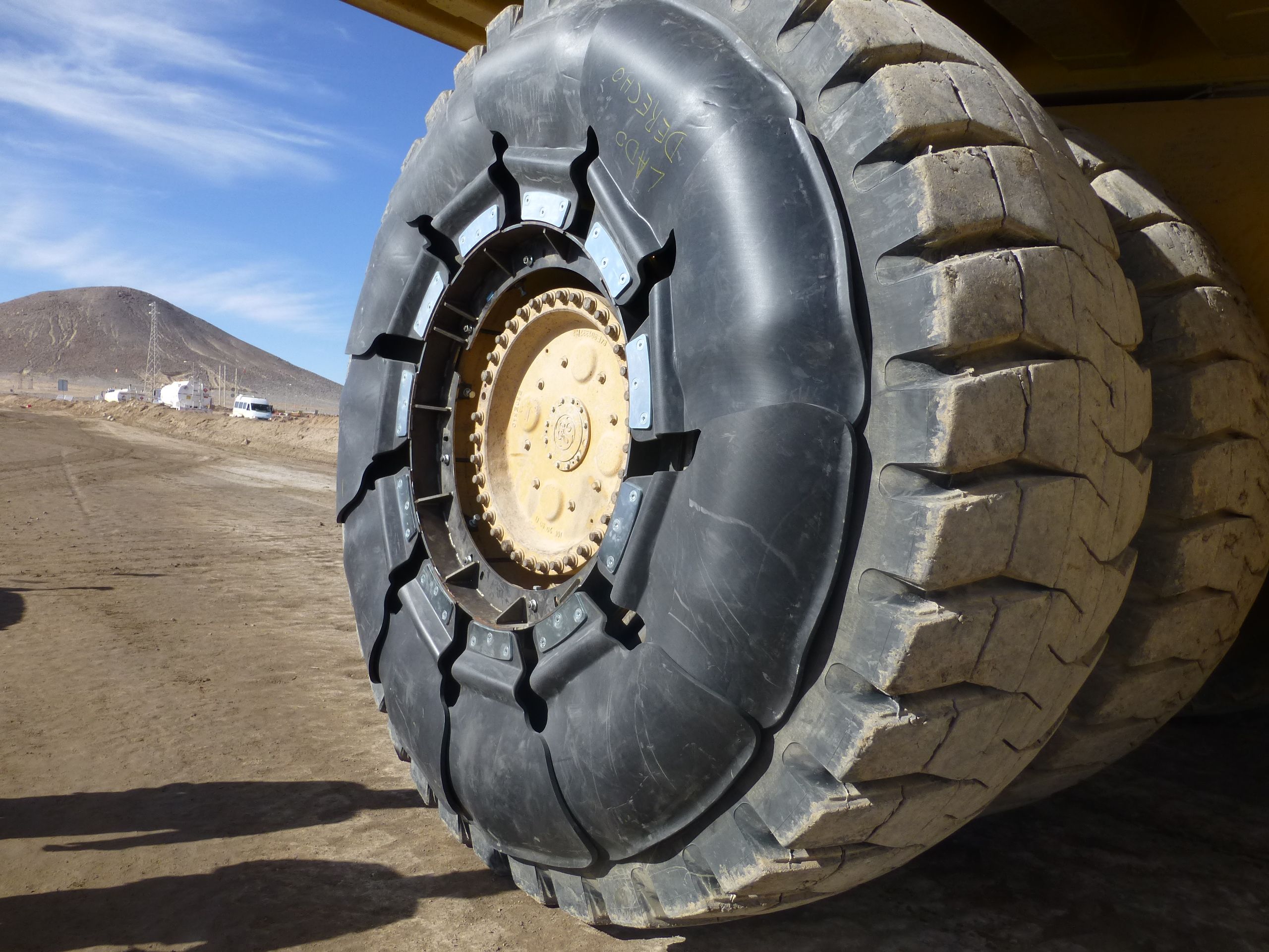 Tyre side protection for dump trucks has always been a challenge. Conventional tyre protection chain systems have not yet been able to solve this problem due to wear.
